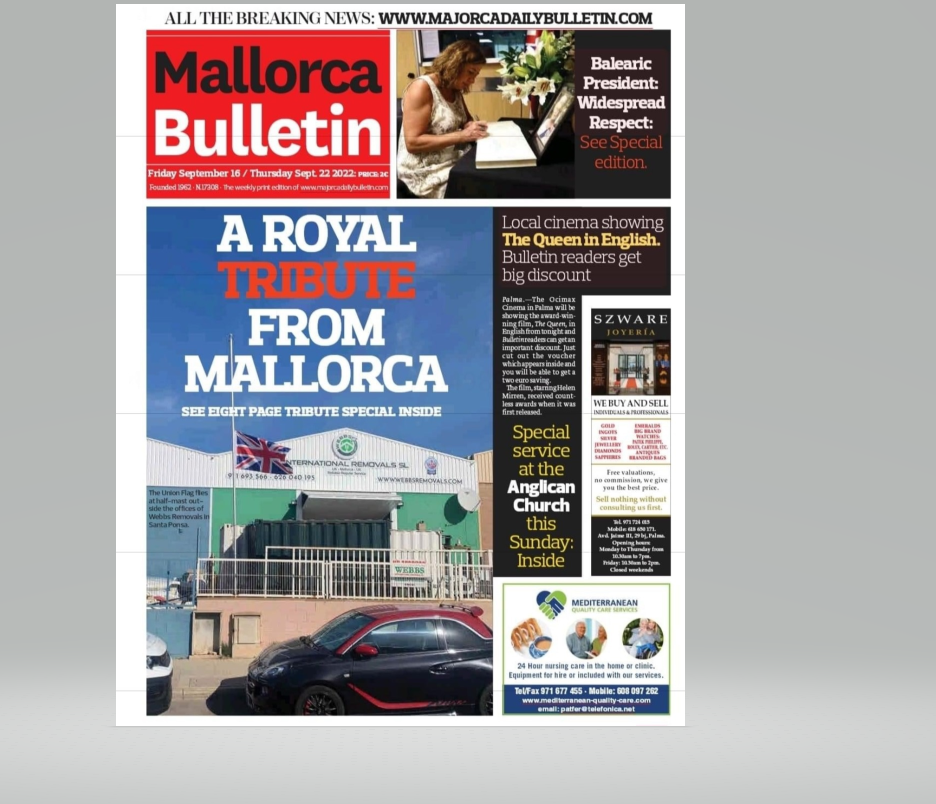 We were honoured that our Local British Newspaper here in Mallorca used our picture.